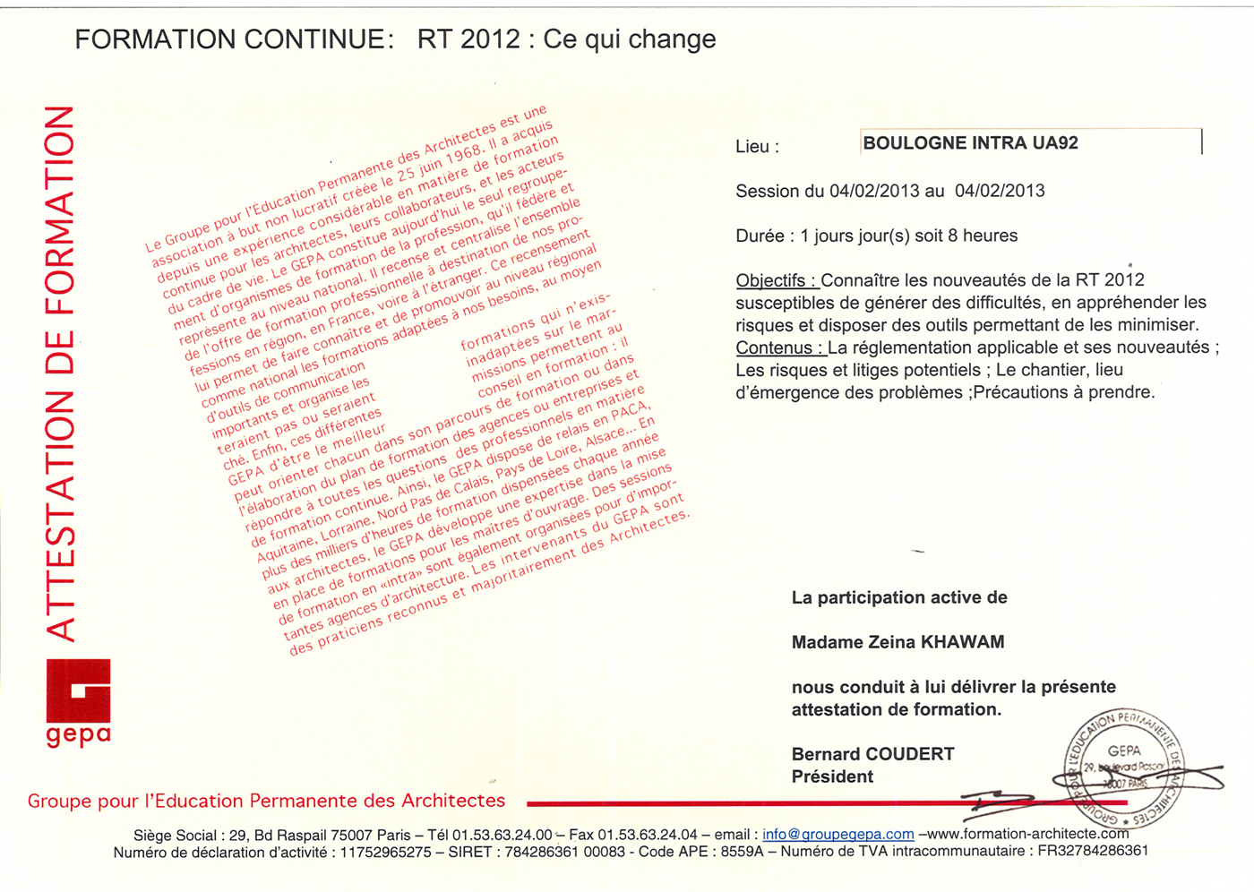 Diplôme de l'Ecole d'Architecture de Charenton le Pont |